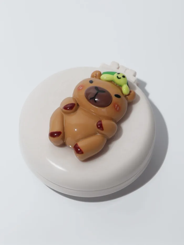 Расчёска массажная «Капибара», складная, с зеркалом, d=6.5 см, белая