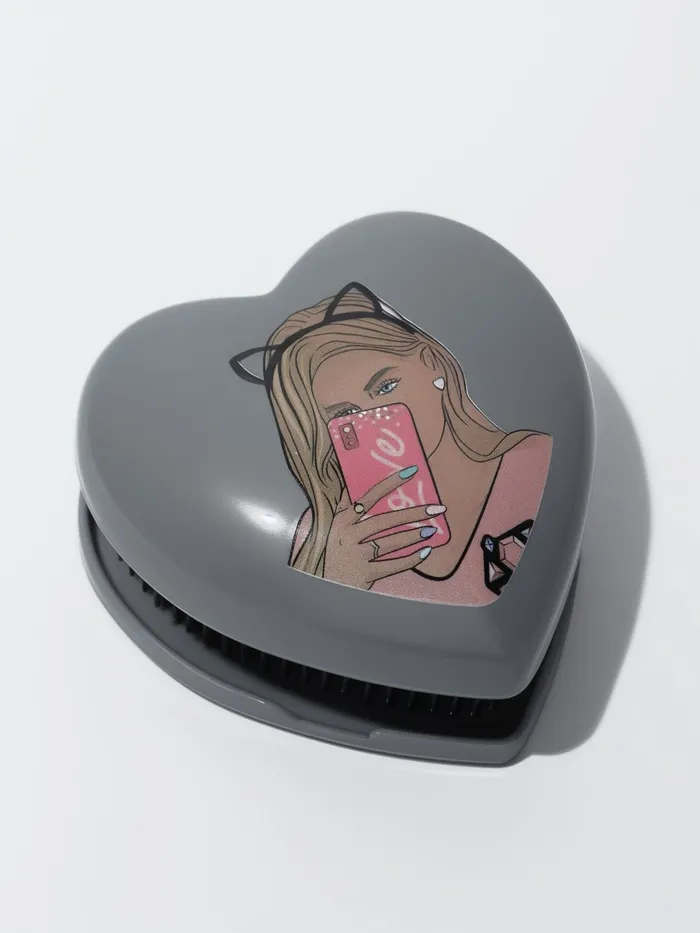 Расчёска массажная «Сердце», складная, 8.5×8.5 см, серая