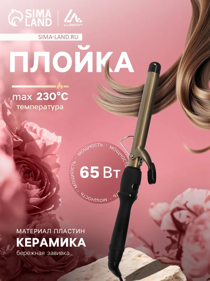 Плойка Luazon LW-07, 65 Вт, керамическое покрытие, d=25 мм, 230°С, чёрная