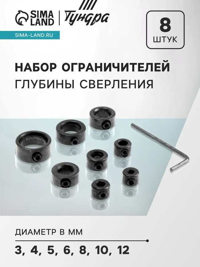 Набор ограничителей глубины сверления ТУНДРА, d=3-12 мм, 8 шт.
