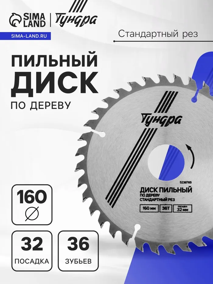 Диск пильный по дереву ТУНДРА, стандартный рез, 160×32 мм (кольца на 22.20,16), 36 зубьев