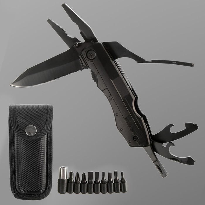 Мультитул 9в1 в чехле, рукоять черная, 9×3.5×2.5 см