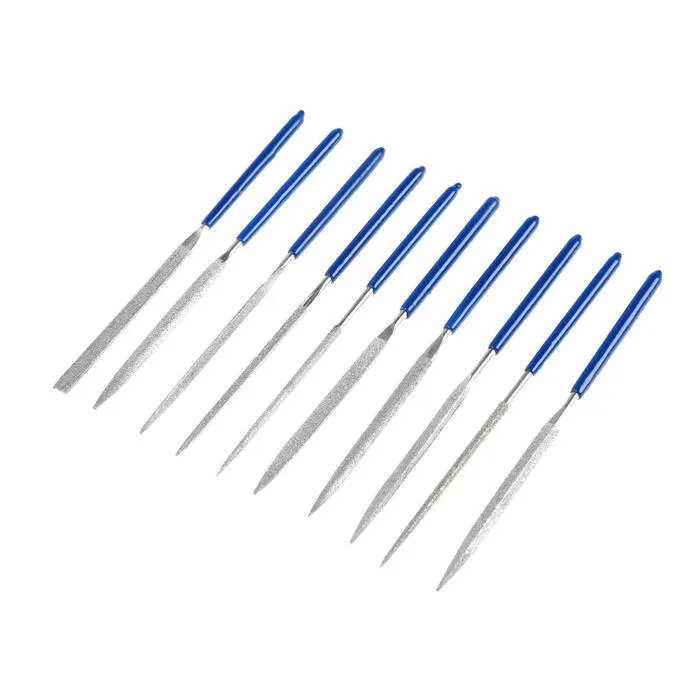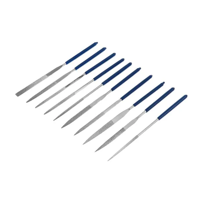 Набор надфилей алмазных ТУНДРА, обрезиненные рукоятки, 70×140×3 мм, 10 шт.