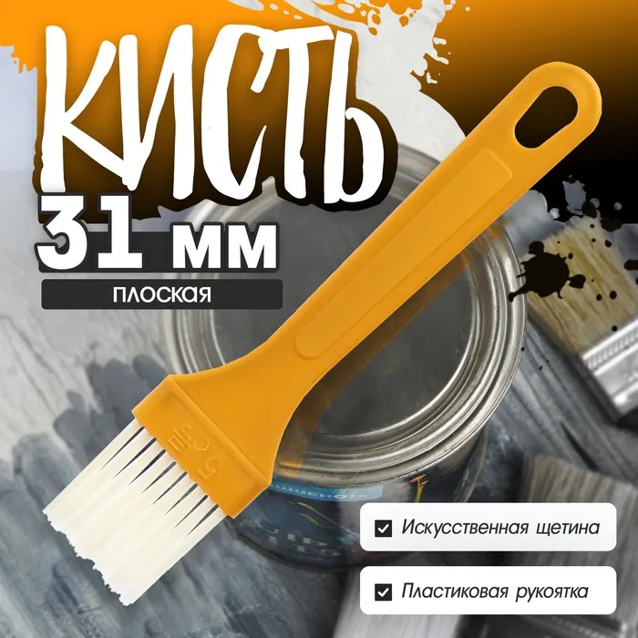 Кисть плоская ЛОМ промо, искусственная щетина, пластиковая рукоятка, 31 мм