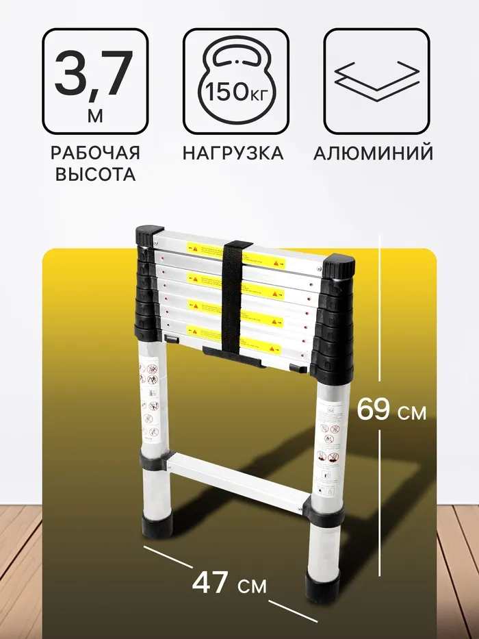 Лестница телескопическая ТУНДРА, алюминиевая, 7 ступеней, 2 м