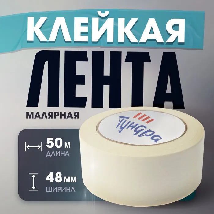 Лента малярная ТУНДРА, самоклеящаяся, бумажная основа, 120 мкм, 48 мм × 50 м