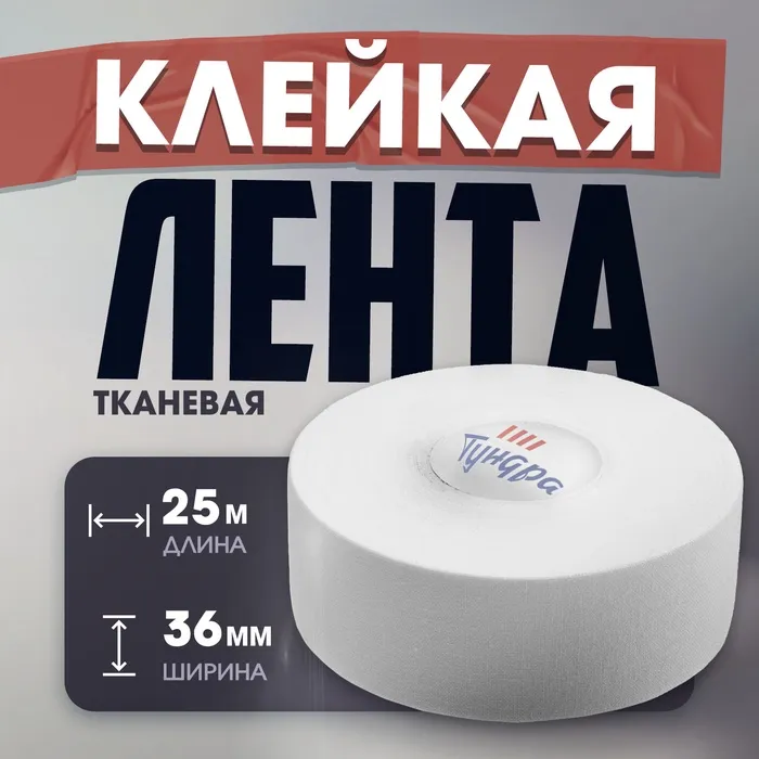 Лента клейкая ТУНДРА, тканевая, хоккейная, белая, 300 мкм, 36 мм × 25 м