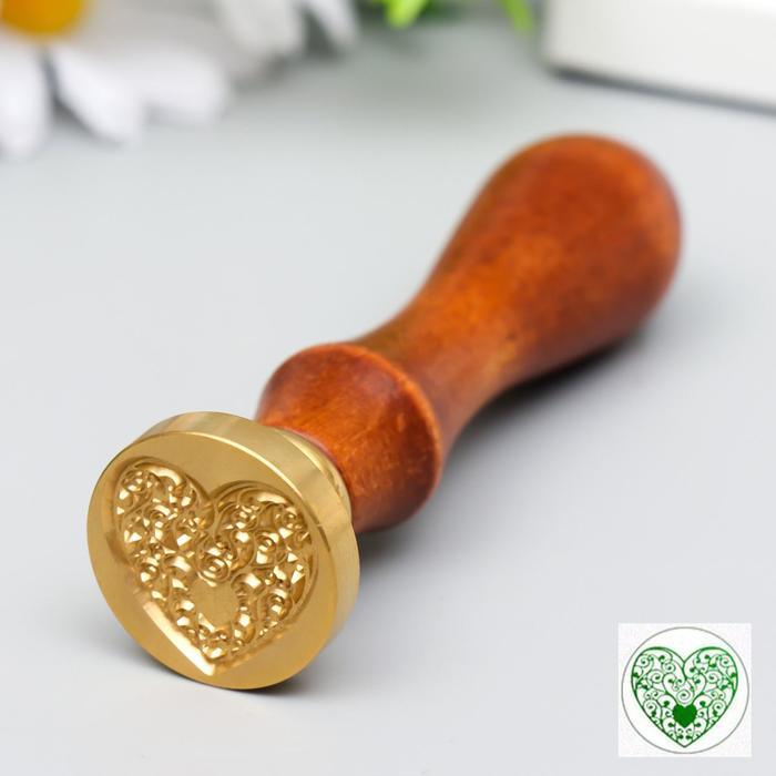Печать для сургуча с деревянной ручкой «Сердце с завитками», 9×2.5×2.5 см