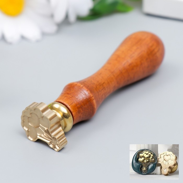 Сургучная печать с деревянной ручкой «Связка шаров-сердечек», фигурная, печать - 2.4×2 см, ручка 8.2 см