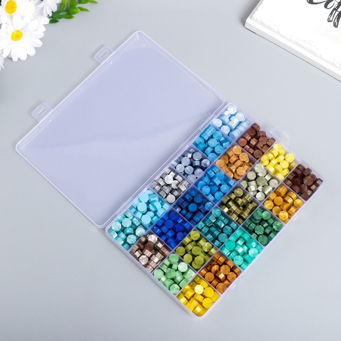 Набор сургуча «Палитра зелёно-голубая», перламутр, 24 цвета, 19×13×2 см