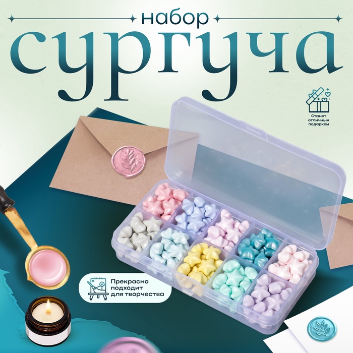 Набор сургуча «Звёздочки», пастельные тона, 10 цветов, 12.7×6.5×2 см