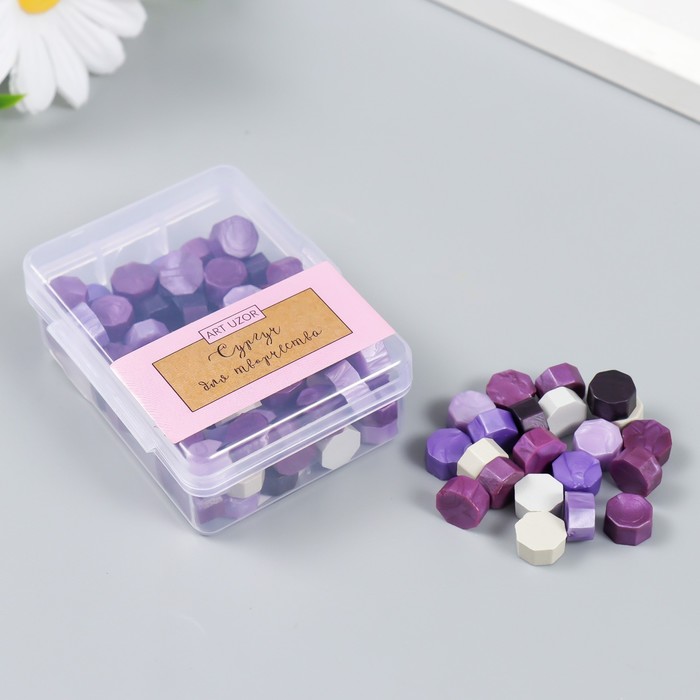 Сургуч в гранулах в коробочке «Восьмигранник», палитра фиолет, 30 г, 2.4×5.5×7 см