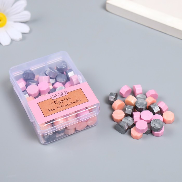 Сургуч в гранулах в коробочке «Восьмигранник», розовый и серебро, 35 г, 2.4×5.5×7 см