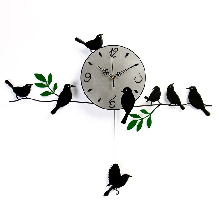 Часы настенные интерьерные «Птички на веточках», плавный ход, 74×52 см