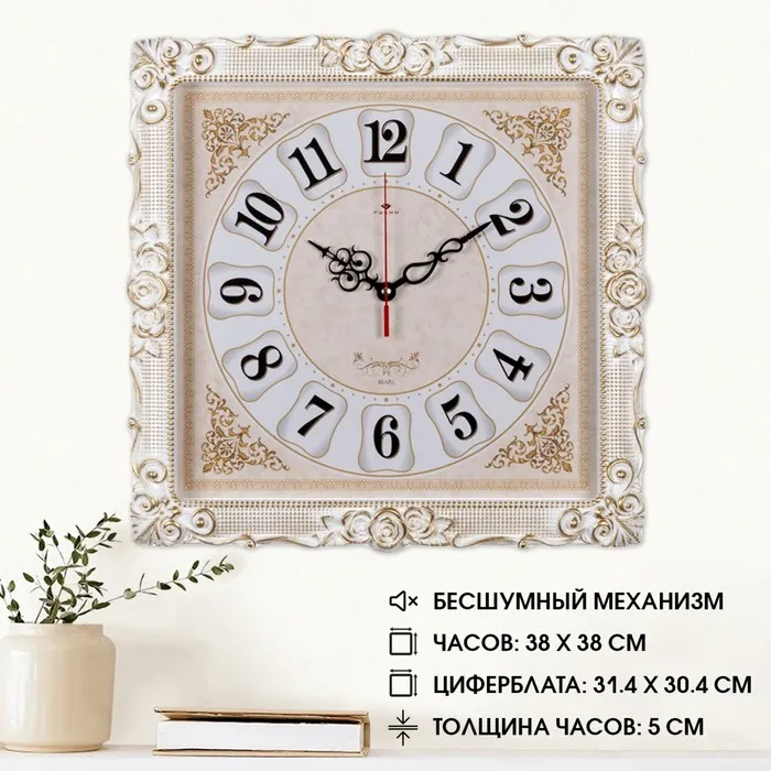 Часы настенные, интерьерные "Барака", бесшумные, 38 х 38 см, белое золото