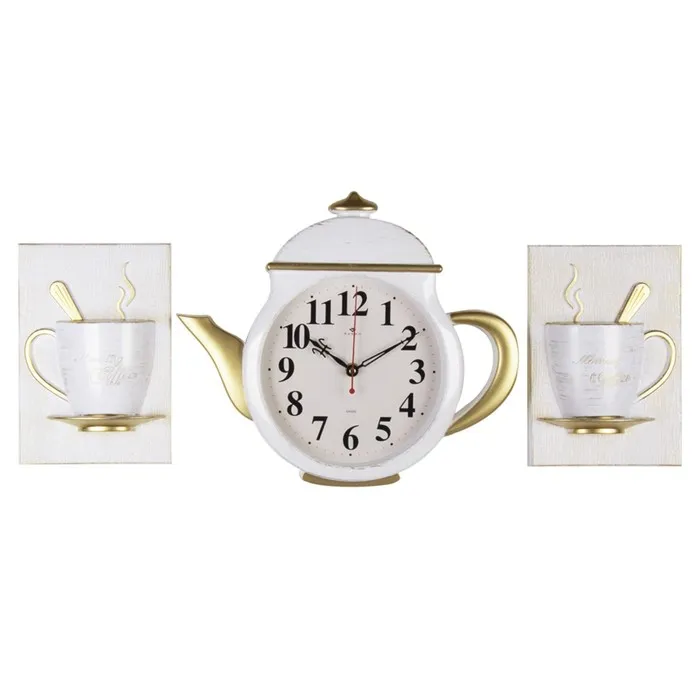 Часы настенные интерьерные, для кухни "Чайник и две чашки", бесшумные, 29 х 34 см, белые