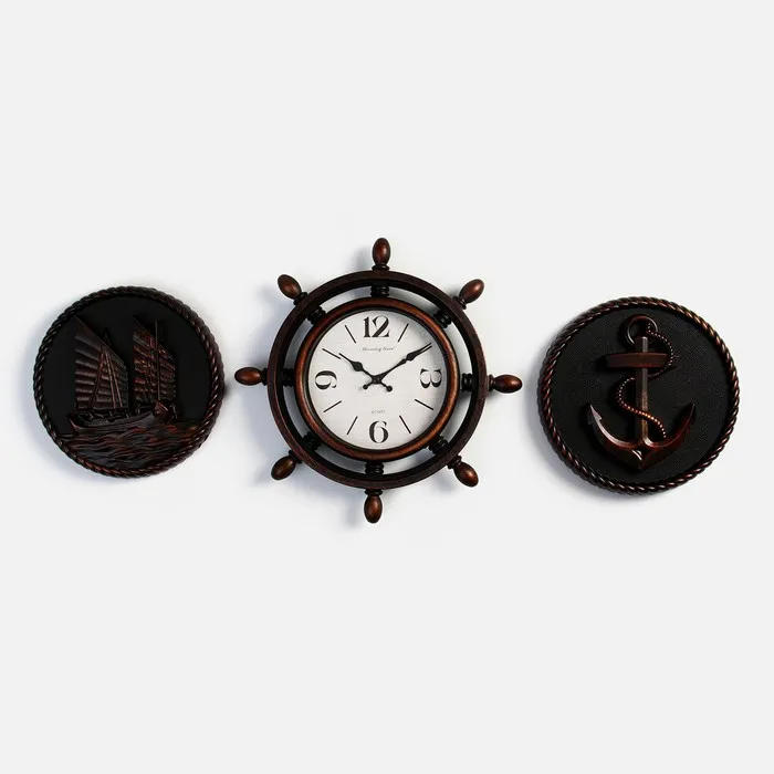 Часы настенные, серия: Море, "Штурвал", дискретный ход, d=33 см, d циферблата=16.5 см