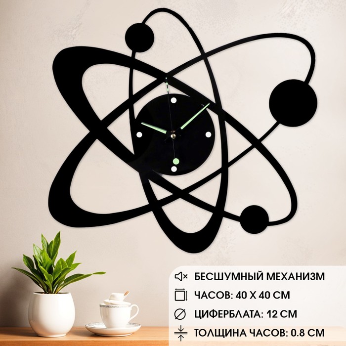 Часы настенные, интерьерные "Космос", бесшумные, d-40 см, светящиеся