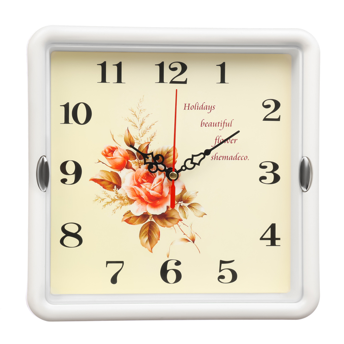 Часы настенные классические «Цветы», бесшумные, плавный ход, 22×22 см, белые, от батарейки 1×АА