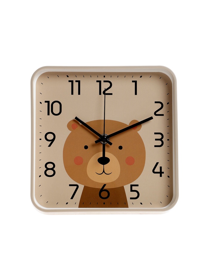 Часы настенные «Медвежонок», детские, плавный ход, 19×19 см, бежевые
