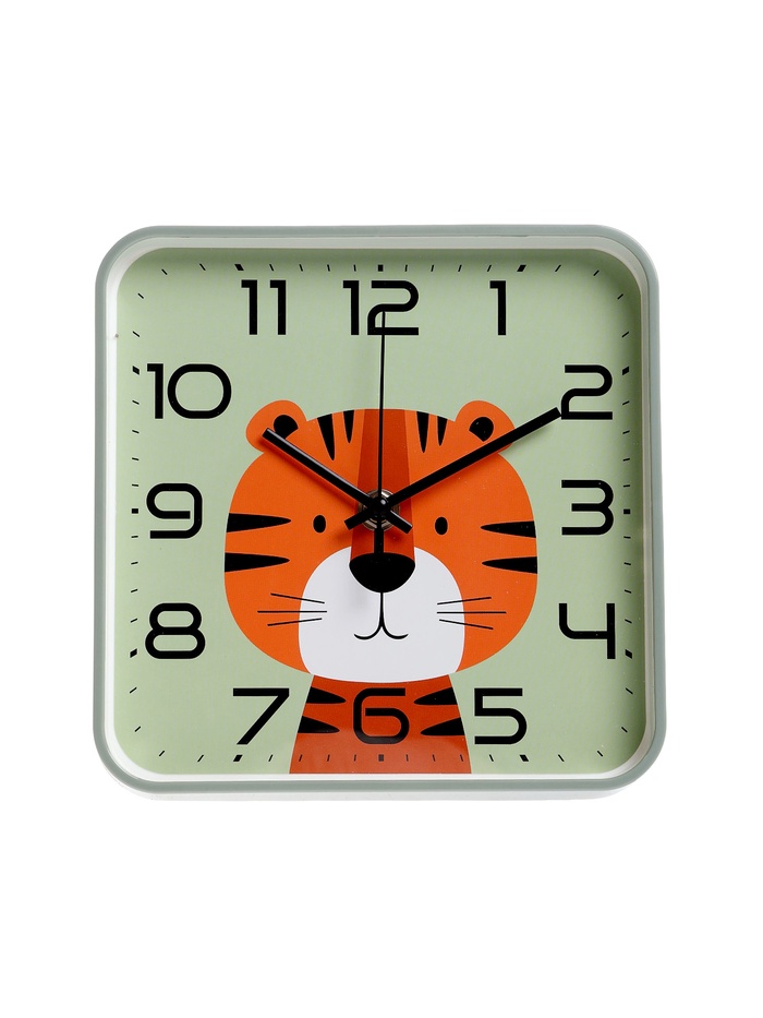 Часы настенные «Тигрёнок», детские, плавный ход, 19×19 см, зелёные