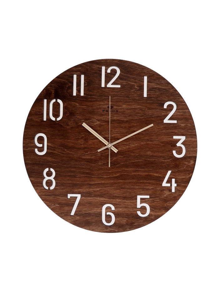 Часы настенные, интерьерные, бесшумные, плавный ход, d=40 см, дерево, коричневые