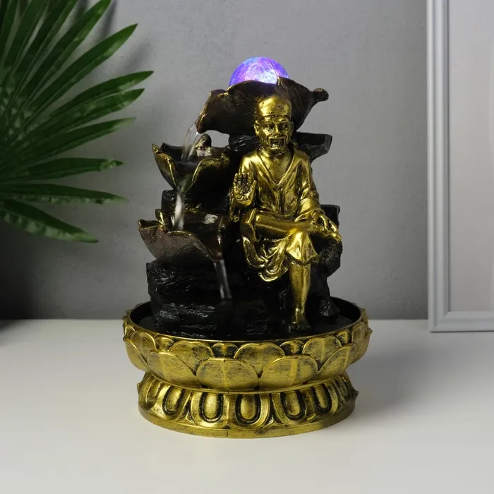 Фонтан настольный от сети, подсветка "Серый Будда у каменного фонтана" 21х17,5х26 см