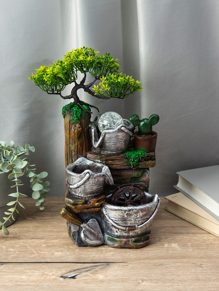 Фонтан настольный «Ведёрки под деревом», 32×15×13 см, с подсветкой