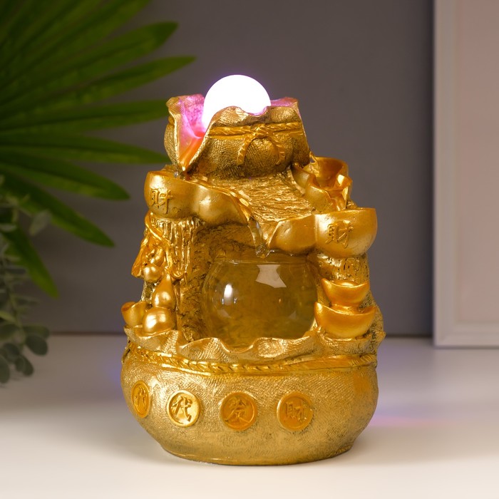 Фонтан настольный «Мешок с золотыми слитками», под золото, с подсветкой, 21×15×12 см