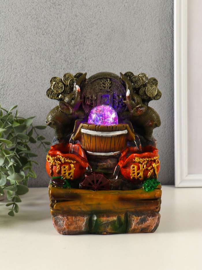 Фонтан настольный «Слоны с монетами», 19×28 см, с подсветкой