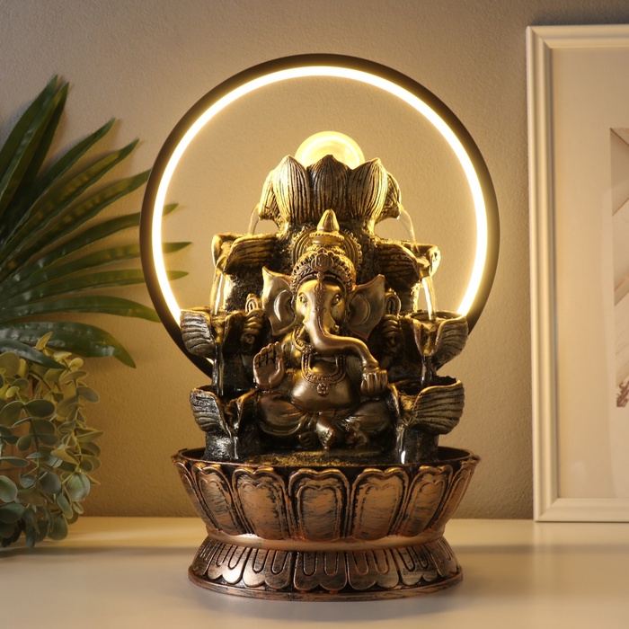 Фонтан настольный с подсветкой «Ганеша в золотом под водопадами», от сети, 25×20×34 см