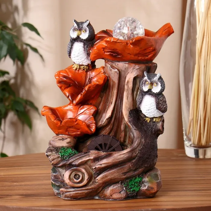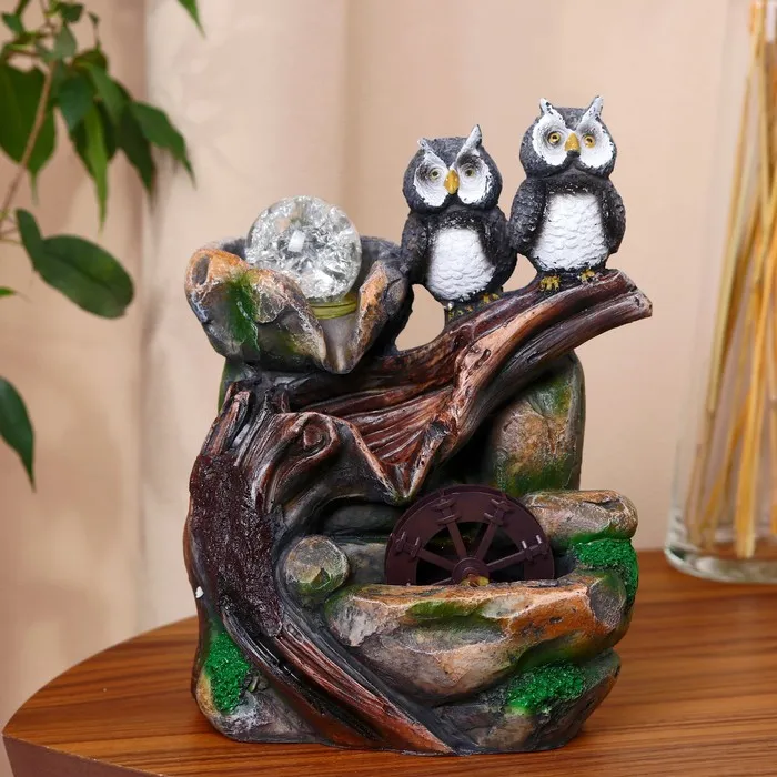 Фонтан настольный «Две совы у камня», 20.5×27 см, с подсветкой