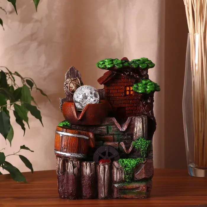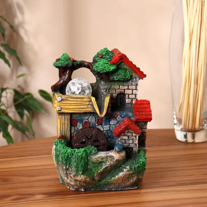Фонтан настольный «Домик в лесу», 13×14.5×19.5 см, с подсветкой