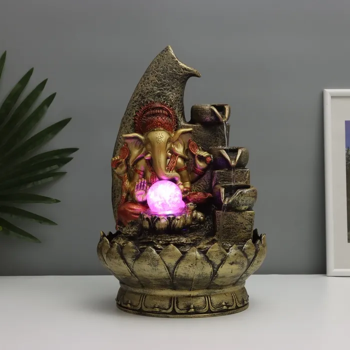 Фонтан настольный от сети "Ганеша в лотосе" 21,5х16х13 см