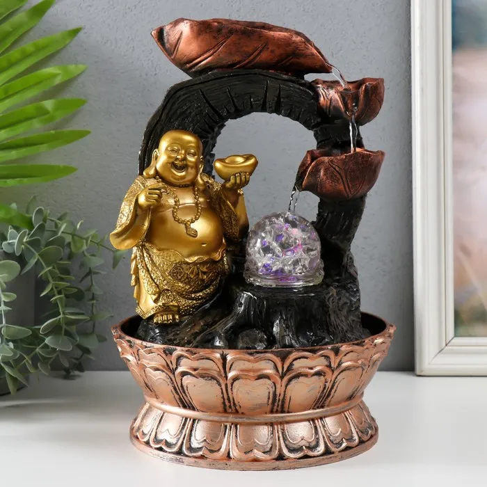Фонтан настольный от сети "Лакшми в золотом одеянии у водопада" 28х19х19 см