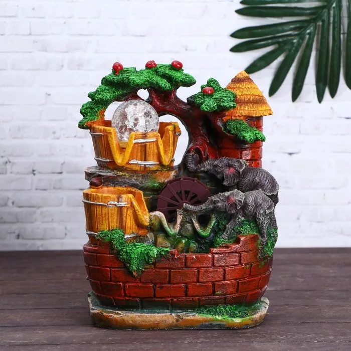 Фонтан настольный «Слоны с монетками, пальма», 20×13 см, с подсветкой
