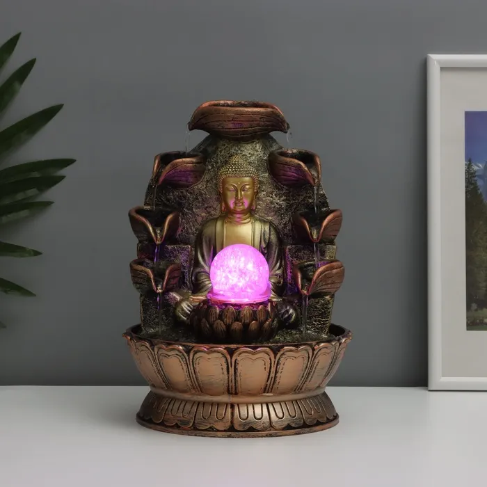 Фонтан настольный от сети, подсветка "Будда у скалы с чашами" 26х20х20 см, МИКС