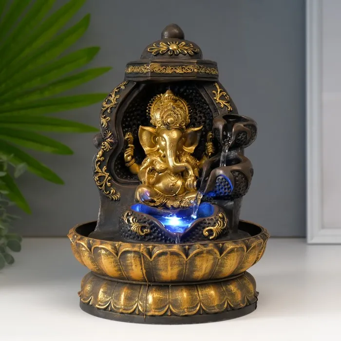 Фонтан настольный от сети, подсветка "Золотой Ганеша у природного фонтана" 20,5х15х15 см