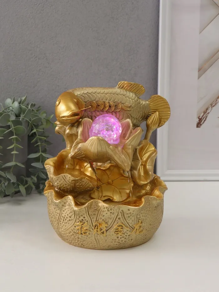 Фонтан настольный от сети, подсветка "Золотой карп с монетами" золото 21х15х12 см
