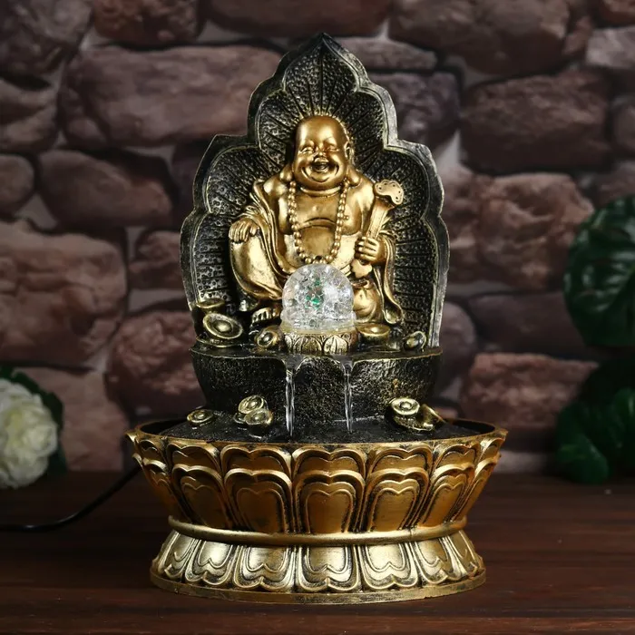 Фонтан настольный от сети, подсветка "Будда в арке с водопадом" 30х21х21 см
