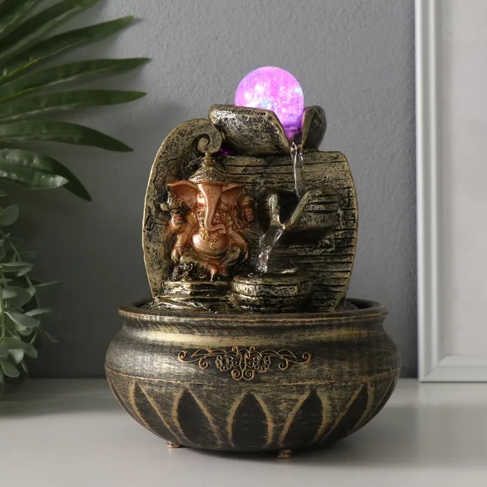 Фонтан настольный от сети, подсветка "Ганеша на троне" 28х20х20 см