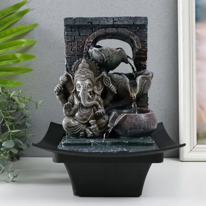 Фонтан настольный от сети, подсветка "Ганеша у каменного фонтана" серый 20,5х20,5х26 см