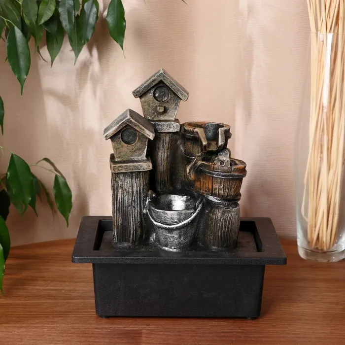 Фонтан «Домики для птичек», 23×17.5×28 см, с подсветкой, без шарика