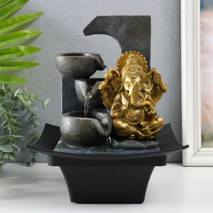 Фонтан настольный от сети, подсветка "Золотой Ганеша у каменного фонтана" 20,5х20,5х26 см