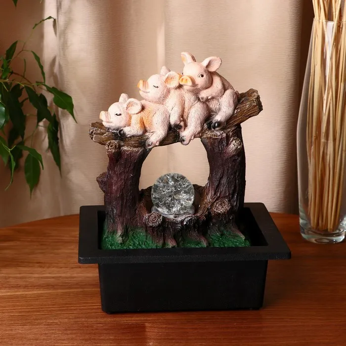 Фонтан настольный «Поросятки на бревне», 16×20×26 см, с подсветкой