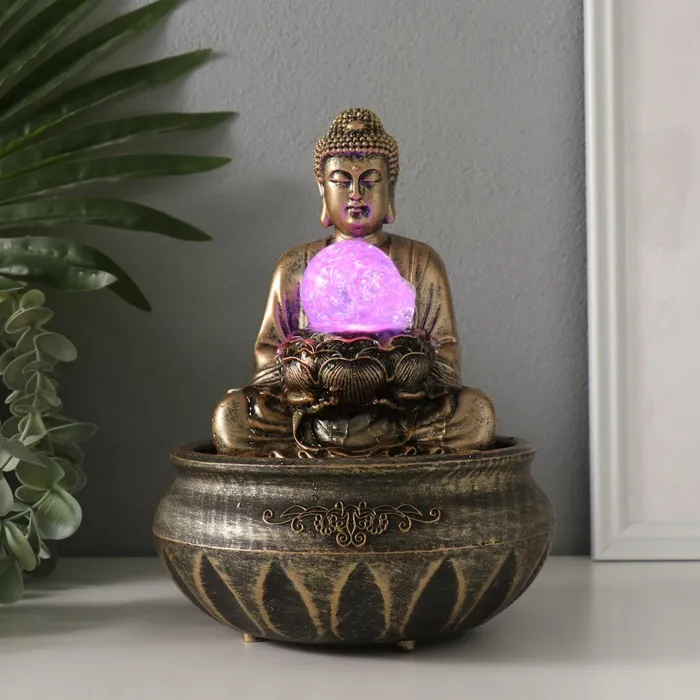 Фонтан настольный от сети, подсветка "Будда перед лотосом" 16х16х22 см