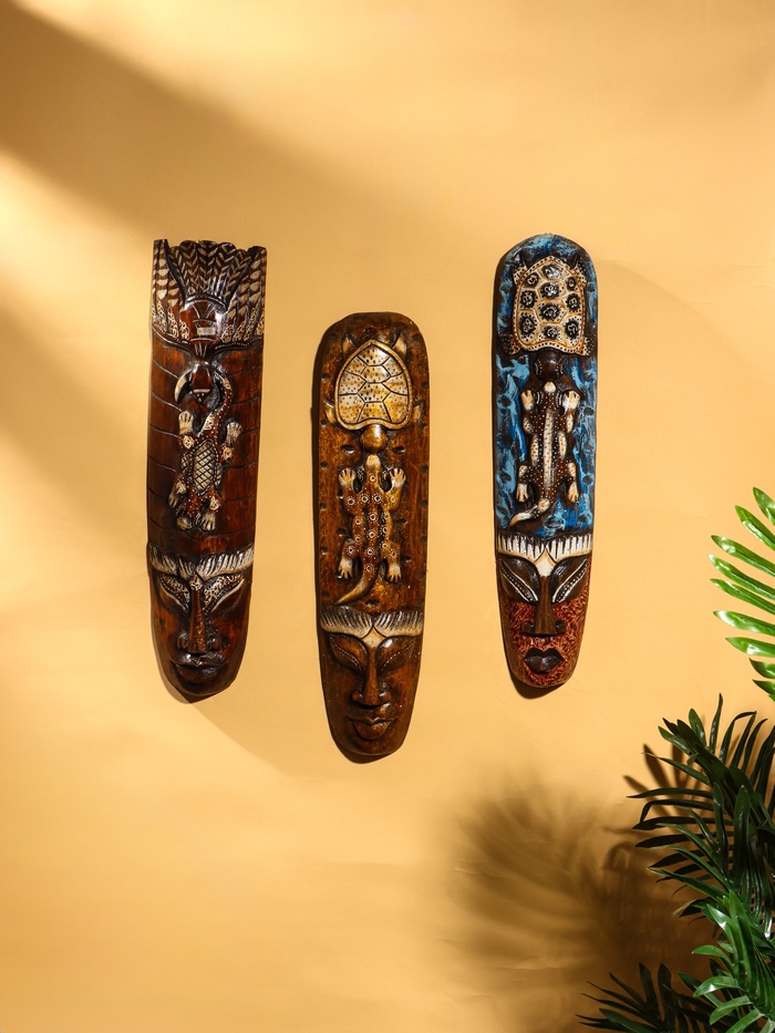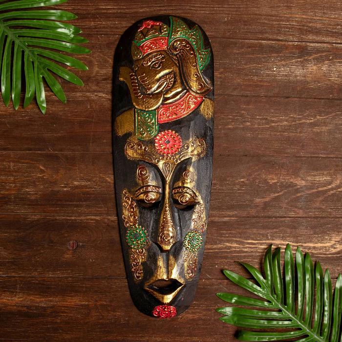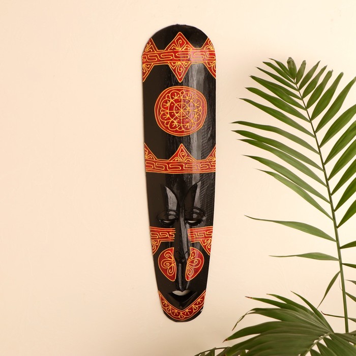 Маска настенная дерево "Абориген черный с красным узором" 3х12х50 см