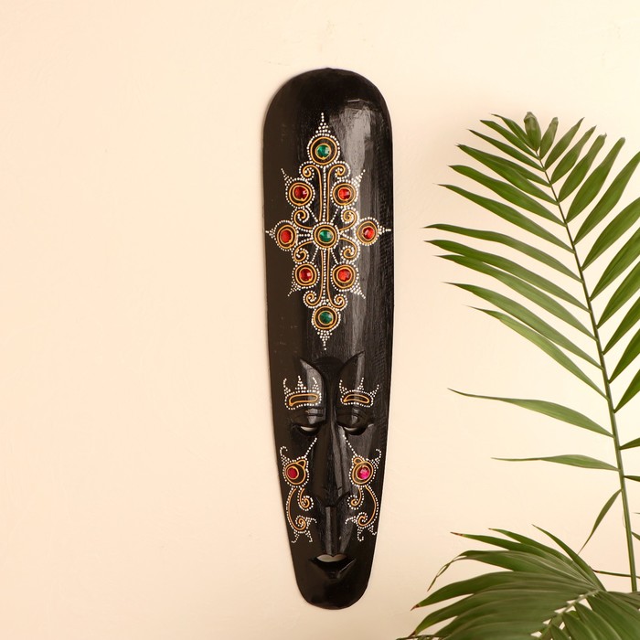 Маска настенная дерево "Абориген черный со стразами" 3х12х50 см