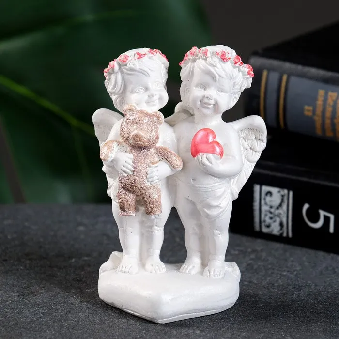 Фигура "Ангелочки с мишкой на сердце" перламутр, 10х7х5см