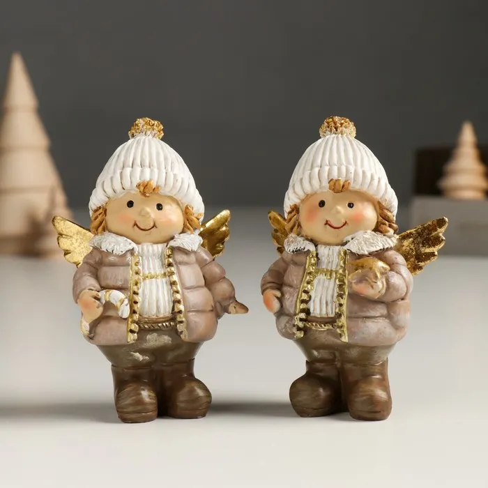 Сувенир полистоун "Малыш-ангел в пуховике и шапке, с леденцом/звездой" золото МИКС 6х4х9 см 949889
